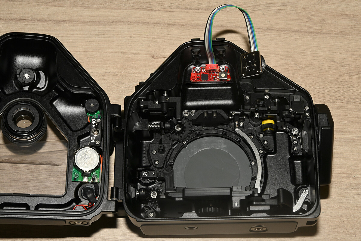 Underwater Technics TTL converters for OM System / Olympus draw a micro-current from the +5V power supply pin on the camera's hot shoe and require no battery.