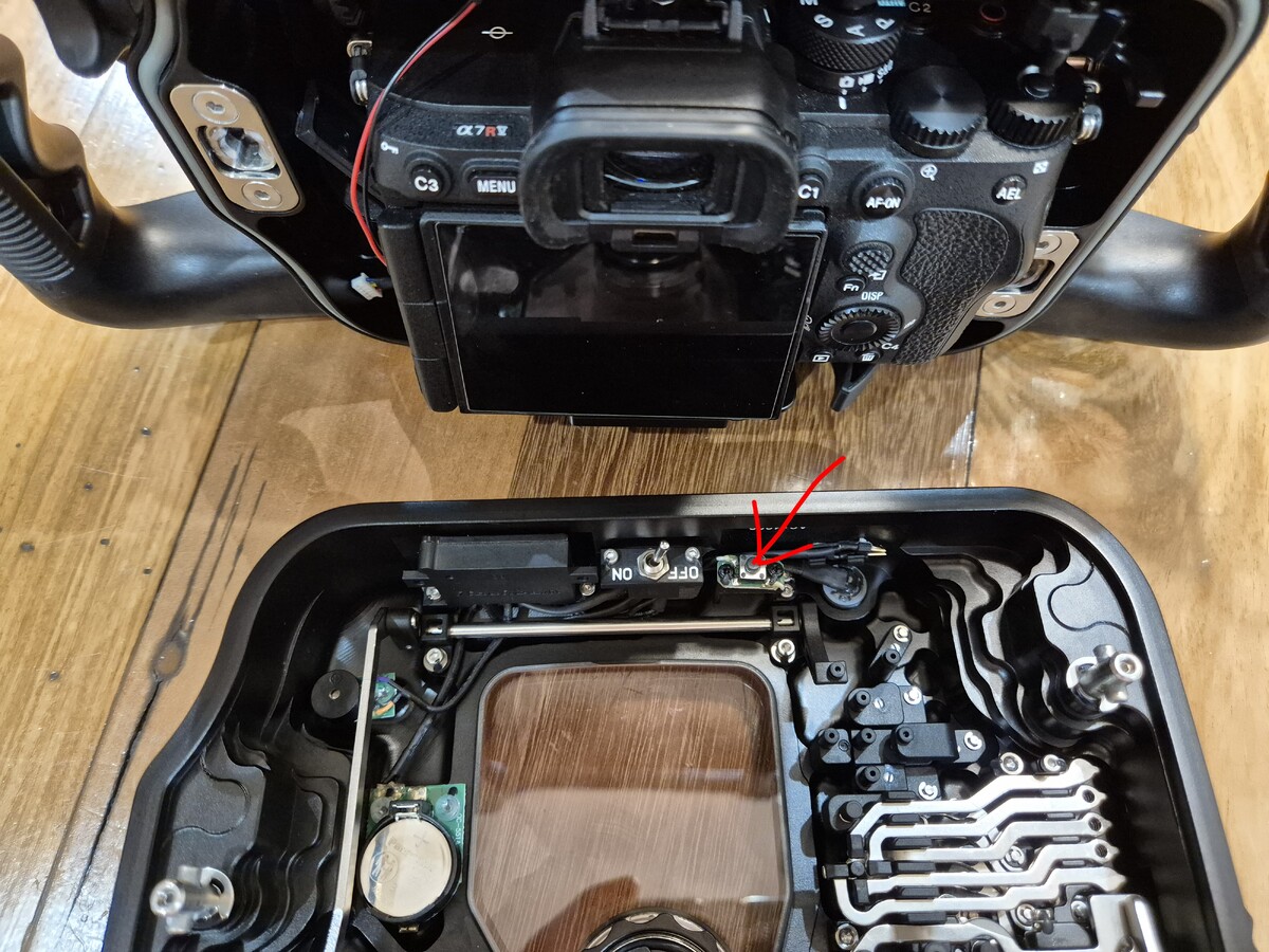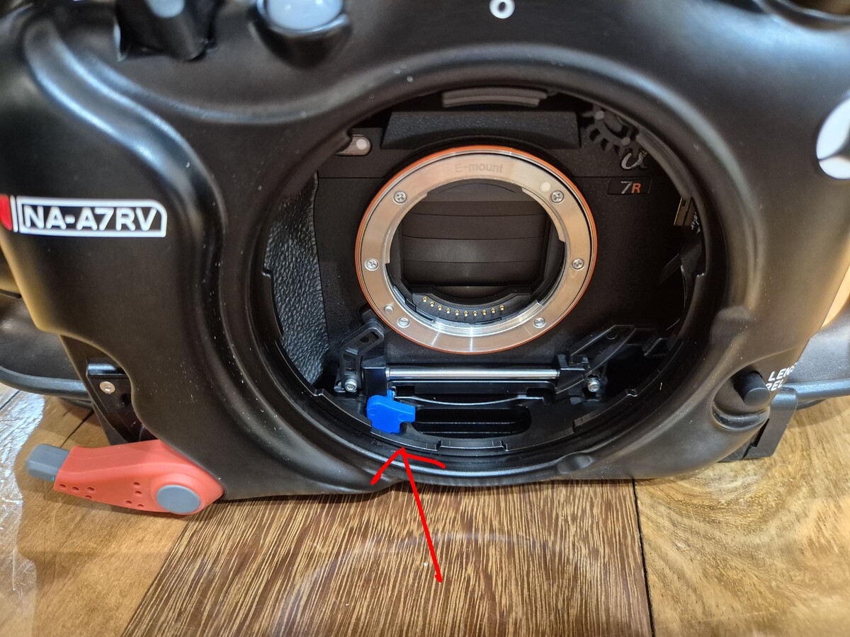 It is only made to rearm the vacuum sensor in surface in the case change the lens by opening only the front port. In that case, you don't need to remove the back of the housing turn on/off the vacuum sensor, you only need to press the blue button on the front and do again the vacuum with the pump until green light. The blue button actually press the switch at the back of the housing.