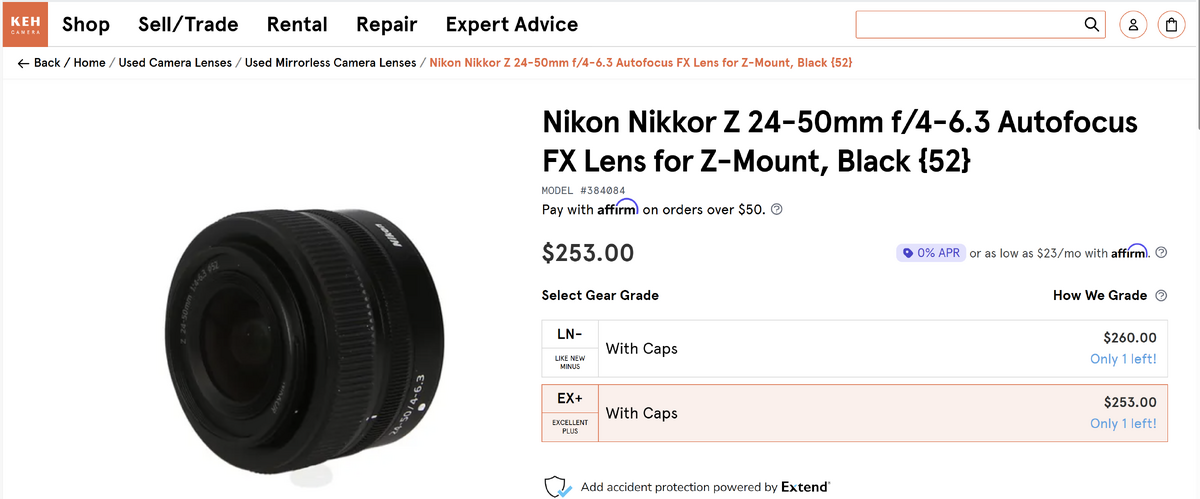 Don't pay $450 for a 24-50z. They go for about $250 on the secondary market in excellent shape. I buy lenses from KEH.com whenever possible.