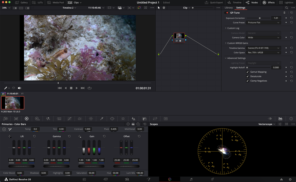 Since we are being authoritative, for underwater landscapes and true wide angle subjects, and for shallow dives, I would actually forget lights. I would also recommend going down the filter route for actual wide angle work on action cams at diving depths. Reason is that the field of view on action cams is extremely wide, and your lights will be largely ineffective for anything more than about 2 m from the camera. And sunlight will overpower your lights in the shallows. So I would save those lights for medium and close-up shots, deep and night dives, but forget about lights for wide-angle. The key is to shoot in a flat profile (log), and to set your white balance point in post. This approach is a tried and tested way which will give you much better results than any in-camera tweaking, including GoPro Labs customisations. And yes, using a good filter does make sense for ambient light WA at diving depths, as it helps mitigate colour casts and achieve a more even colour balance in post in these shooting situations. That is what filters are actually for, not for “bringing back the reds”, contrary to what many people seem to believe. Using a filter gives better results than not using one when shooting ambient-light wide angle footage in a flat profile, as it helps manage the colour cast created by water’s filtration at diving depths when resetting white balance in post. It avoids pushing WB to extremes when dealing with the colour cast (which distorts overall colour balance), preserves cleaner chroma information, and it also helps maintain consistency across shots/depth. As a small reminder to the nay-sayers, filters are still commonly used on cine cameras such as REDs by professional, blue-chip camera operators shooting in specific wide angle situations. Do you really think the capabilities of a cinecam shooting in REDCODE RAW are inferior to those of an action cam? It's time to stop believing in miracles, shooting in RAW or in LOG does not suspend physics... Neither do GoPro Labs hacks for that matter. Back to actual action cams, check out this workflow for inspiration and more info on the subject: https://waterpixels.net/articles/articles_technique/afterhours-magic-ambient-light-video-workflow-for-action-cameras-r161/ Regarding filters themselves, there are gel alternatives you can try (see above thread for links). They are inexpensive and will fit inside the newer GoPro dive housings, between the camera lens and housing port, allowing them to be used with any wide lens. They will likely give better results than Polarpro filters, which were not really designed with an understanding of the effect filters should have on the ambient light spectrum, unlike more researched filters like the UR-Pro Cyan or Keldan Spectrum filters. On white balancing in post, I will throw in a YouTube video of my own, since this seems to be a growing trend in action cam discussions. I am very much on the same page as what Mark is doing here with his GP12 log footage: https://www.youtube.com/watch?v=7DRmzwaO7YU No, he doesn't use filters but the logic is the same. And yes, I still believe a filter would still help for wide angle situations for the reasons mentioned above, even when shooting in log and using multiple gopro labs hacks, since log is just a flat profile, and not a miracle. At the end of the day, a camera can only do so much underwater, and no, it's not just about boosting that red channel because reds are absorbed by water... It's not as simple as that, unfortunately. cheers ben