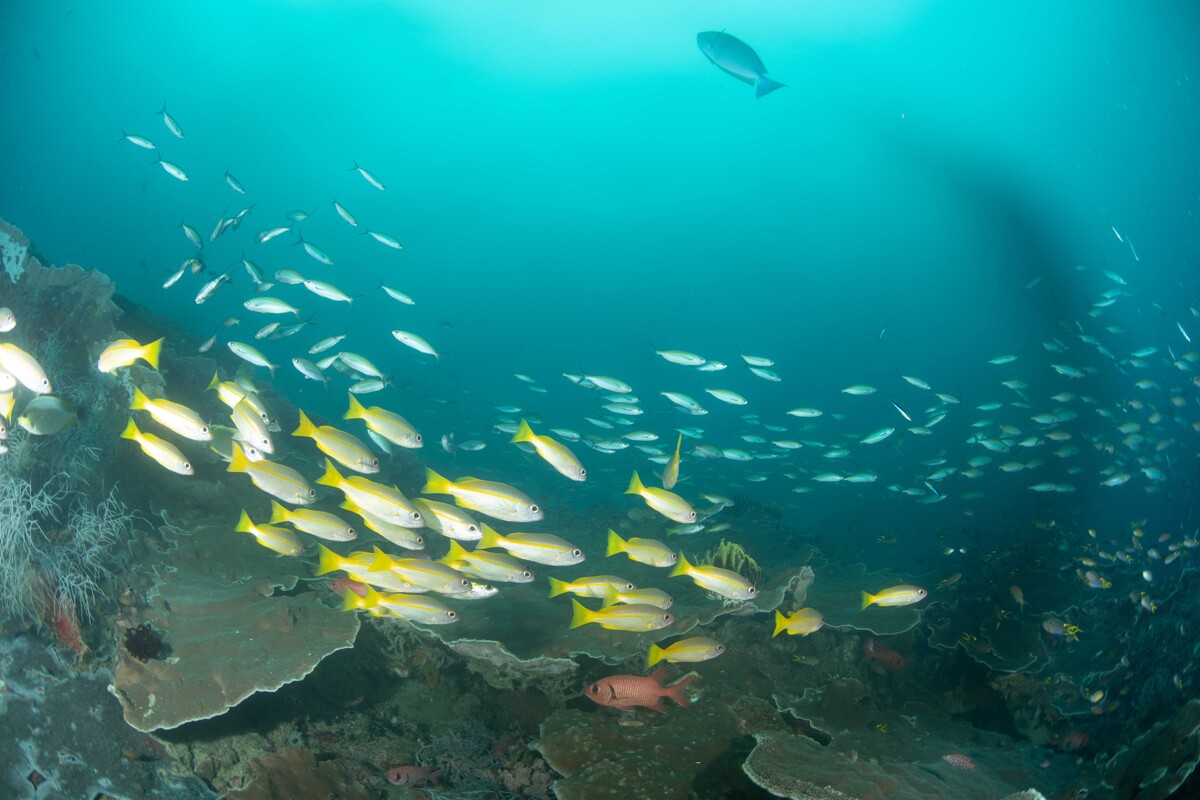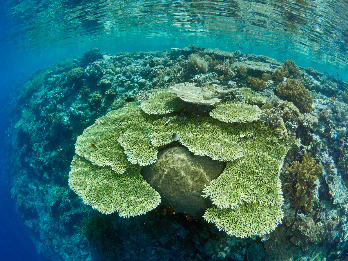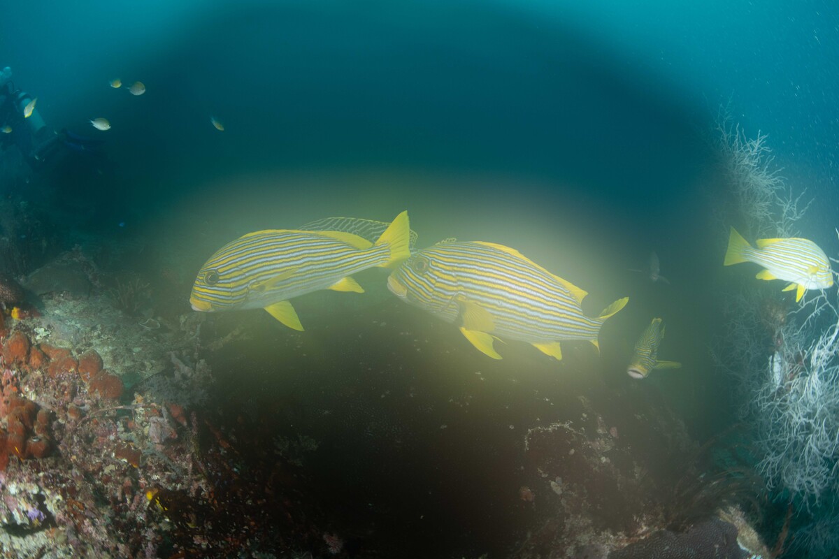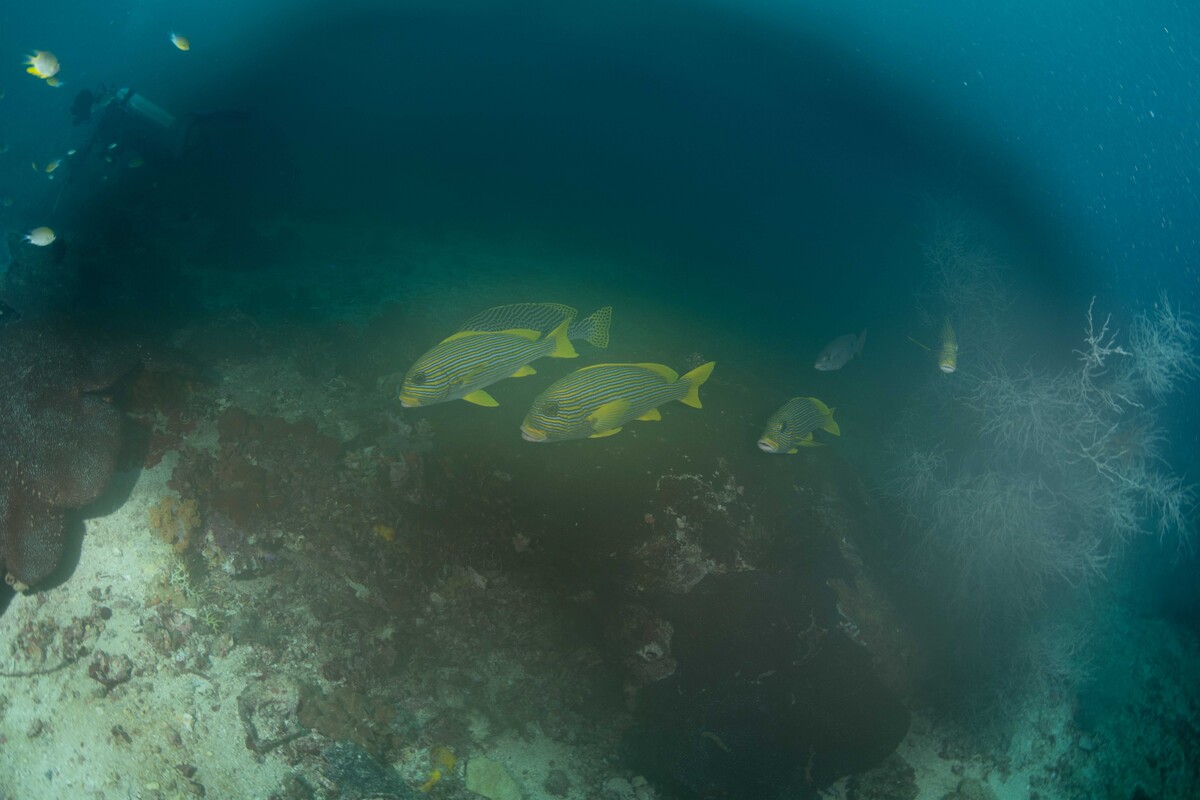 In fact fisheyes play better with domes, the Canon 8-15 is an amazingly sharp lens and the Tokina 10-17 works better UW than it does on land. This is because of dome port optics where the lens is focusing on a virtual image located around 3 dome radii from the dome surface. The Rectilinear wides are designed to focus on a flat plane. so struggle more and more towards the corners. The focal plane of a fisheye lens is curved around the lens so it matches the shape of the virtual image. I dive temperate waters around Sydney and shoot mostly macro with some use of the 12-40 lens (24-80 equivalent) on offshore dives and also using my 8-15 fisheye there on occasions. I have a 7-14 lens (14-28 equivalent) and it uses the same dome as the 12-40, but I rarely use it. I'm not sure the 10-18 would be a great lens for CFWA. To be really effective this requires the lens to focus on the glass of a small dome. Fisheyes do this, but rectilnears have poor corner performance in small domes. Fisheyes have barrel distortion which enlarges the centre of the field relative to the edges and this has the effect of bring the subject forward with the background seemingly receding and this gives the images more impact. The Tokina 10-17 zooms from 180° diagonal fisheye all the way through to about 23-24mm focal length range, so effectively combines the fisheye with the range of of a lens like the 10-18, it just doesn't quite have the reach, but it's close. The 22-24mm focal length range refers to the width of the frame of a wide angle (rectilinear) lens zoomed to about 24mm or so.