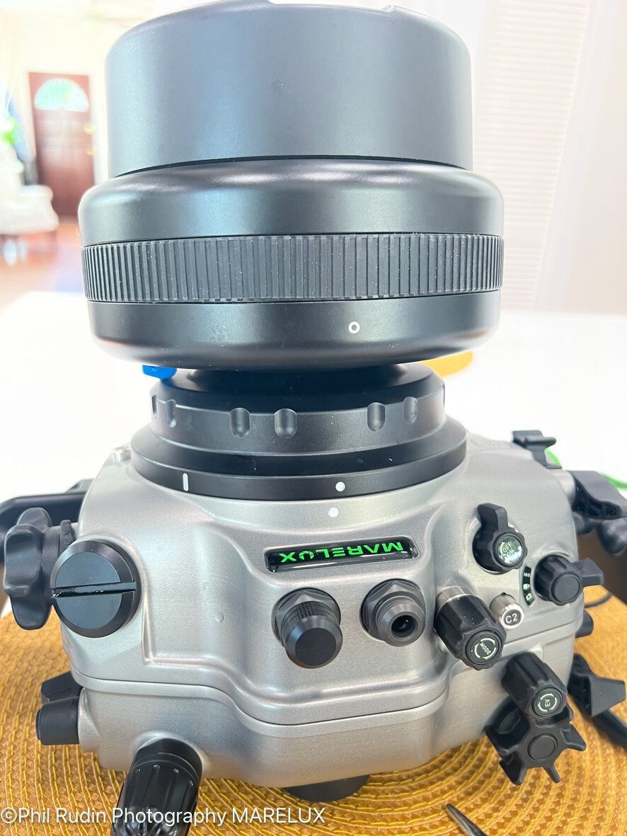 Already done and discussed several times. This is the WWL-1B on the Marelux Sony A1 housing using the Sony FE 28-60mm kit zoom with the flat port 32. You will see that the blue lens release has to be filed down a bit for easer release. The Marelux Aquista 130 & 110 wet wide lenses can also be used on the equivalent Nauticam housings with recommended lens/port combinations using the Marelux bayonet mount which is for 67mm. The Nauticam WACP-C and WACP-1/1B can also be used on Marelux with the respective N100 and N120 port adapters.