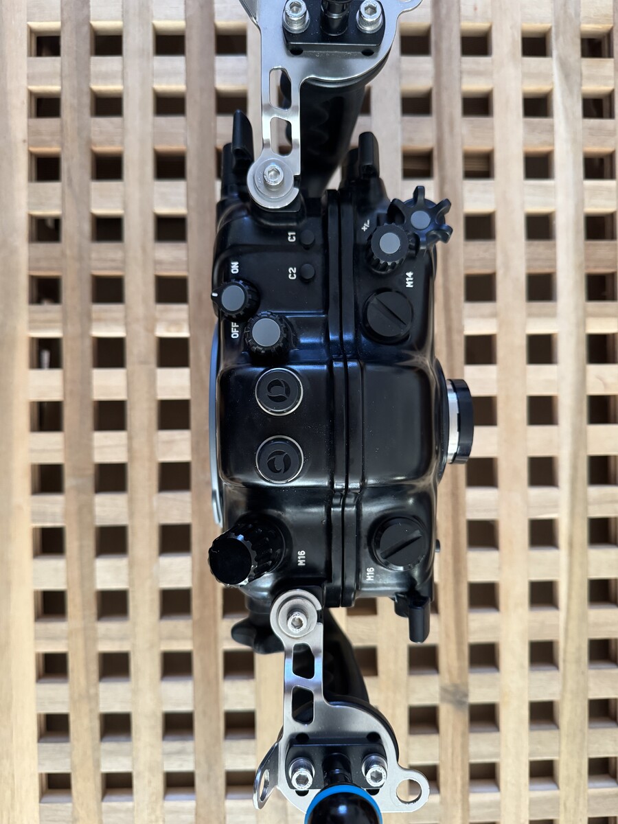 Thank you Davide for sticking it to my first thread about this topic. The problem is the monitor. It is almost 1kg negative in water. I 3D printed a bridge for the floats a few days ago, so it looks nicer now, but I cannot get them closer to the rig. I am thinking about a custom float foam piece for the bottom of the rig, so I could split the load. What do you think? The torque on the wrist were not that wild, the weights were a good support, especially when I am going to upgrade to heavier ones. I could archive a slight tilt with the small tire weights, so I am optimistic that heavier ones will work perfectly. Yes, I am going to open a new thread for the Azores :)
