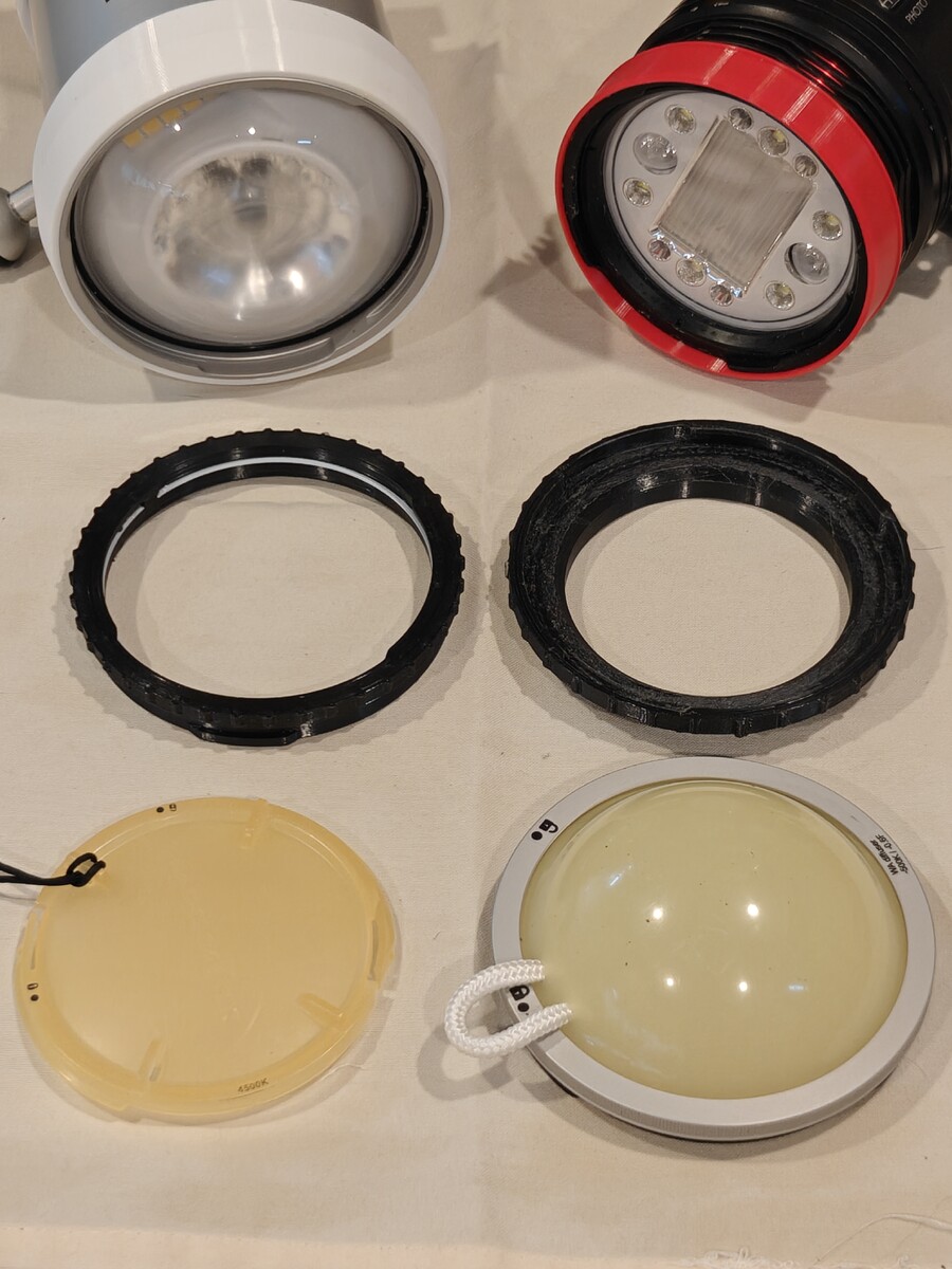 I made a pair of adapters for Retra and HF-1 that allow the use of accessories from the other brand. I have warming filters more mounted in the photos, but you could put an LSD on the HF-1, Backscatters Floro filter on the Retra, etc. Mix and match accessories.- Introduction