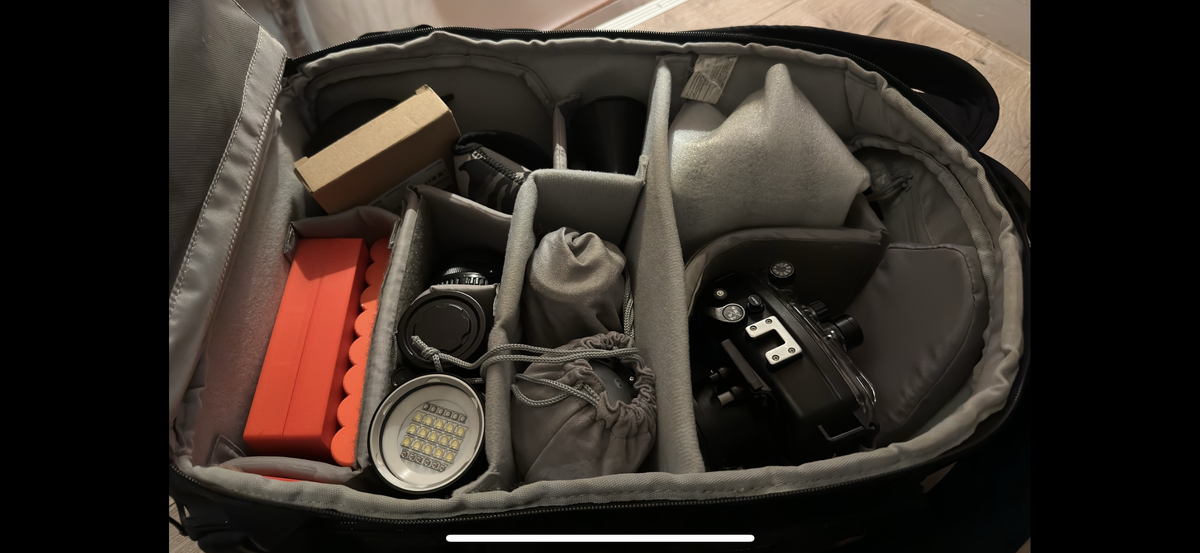 A fellow WaterPixel user asked me if it would be possible to make a hard dome port cap for a new port. They were not comfortable with the provided neoprene cover and wanted something that would provide more protection in and out of the water. I considered it for a bit and came up with the following design for a "universal" dome port cap. It's a parametric model so a port cap can be generated from just a couple of dimensions, providing it's for a conventional dome port style. I prototyped it for a Nauticam 140mm dome port and made another version of the users 6-inch dome. I printed this in a very tough TPU with a 68-shore hardness. It's flexible but quite rigid. I used an open face grid design to avoid the typical resistance that makes removing port caps harder than necessary. A pair of clips hold the cap in place, with bungees for a more secure connection. What do folks think of this design? I've not tested it in the water yet but will soon. Nauticam 140mm and 6-inch dome: (the smaller part in the photos is incomplete...)