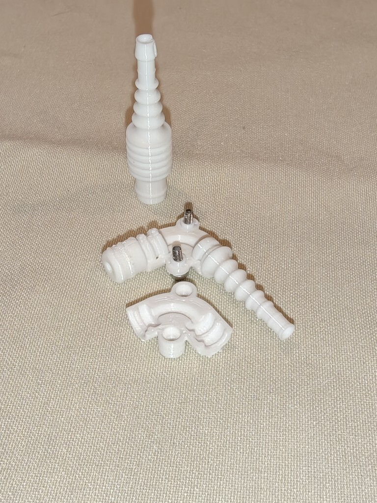 That's exactly what my connectors are designed for. The connection parts are all soft TPU rubber and the 180deg straight parts is designed to bend and flex. The tall vertical is the 180deg connector. Bendy and grippy. Send me a private message with the connector layouts you want. In general: Strobes with the connection on the back (Retra) work best with a 90deg elbow connector Strobes with the connection on the side (Backscatter, Inon) work best with a 180deg connector Housings can go either way. I use 90deg for the Nauticam ports on the top of the housing (Image below with both Backscatter and Retra strobes on Nauticam housing)