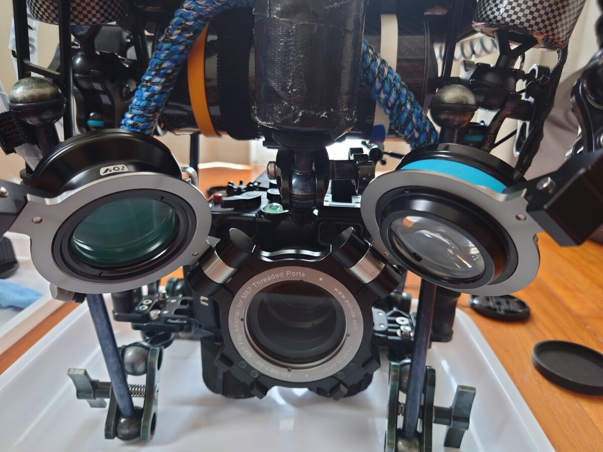 Basically the CMC-1 and CMC-2 comes with a 67mm adapter (Nauticam), to use it directly on any 67mm port - you remove it to use the lens on a flip mount - this adapter doesn't fit on the AOI flip adapter (it's too big, so the adapter's locking mechanism gets in the way. Meaning you can only use the diopter without it (which is normal, this is the way you're supposed to mount it on the Nauticam flips), However, without it, the CMC1's lens end extends to far from the flip holder, as seen in the picture, meaning you can't close the flip and there is a gap. The solutions is not to screw it in fully, or rather to put an o-ring on the tread so you can screw it in but it doesn't extend as much, then you can close the flip and not have a gap. Other than this CMC-1 issue, the AOI is really nice. I use it with the same lens, Fantasea/AOI +6 and it's perfect. Vignetting is pretty much the same as without the flip adapter. But it is 300g or so, plus the weight of two lenses, so this is something to take into account for rig balance/trim