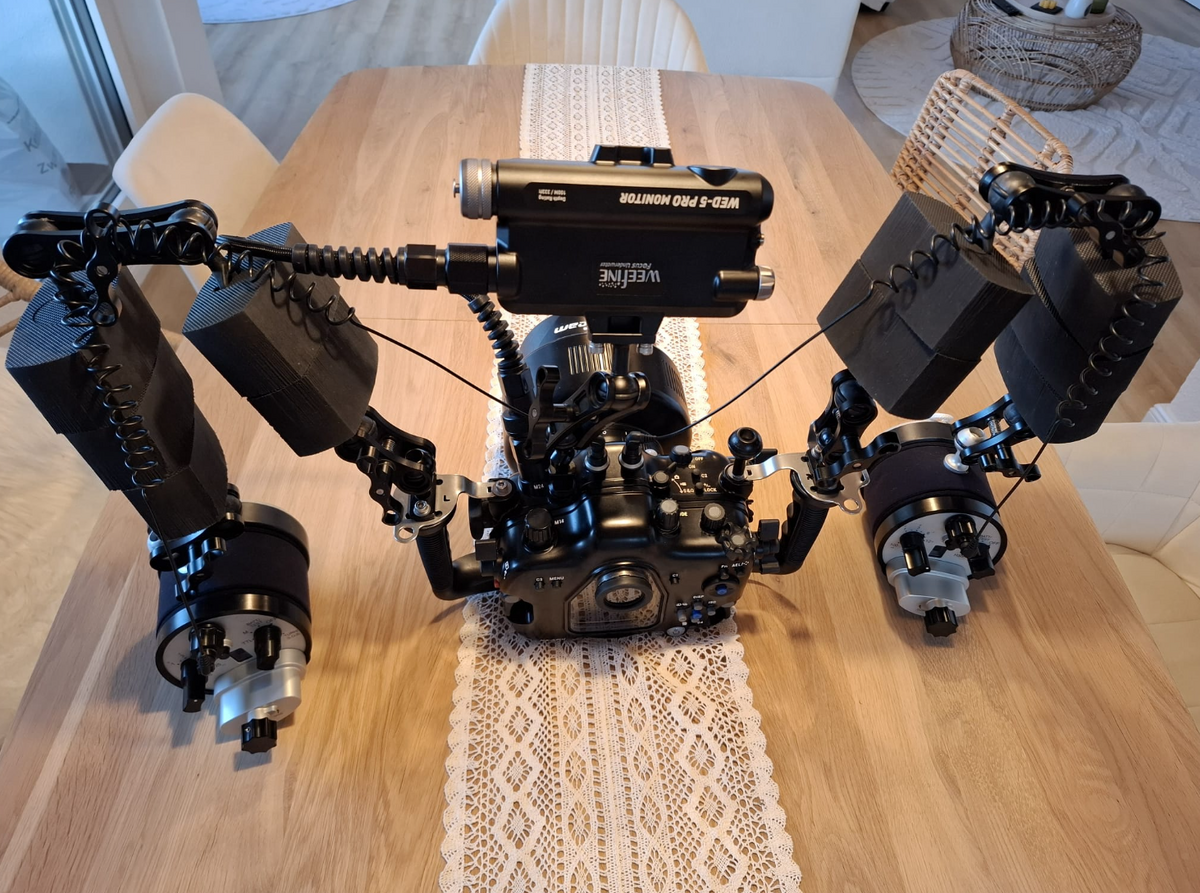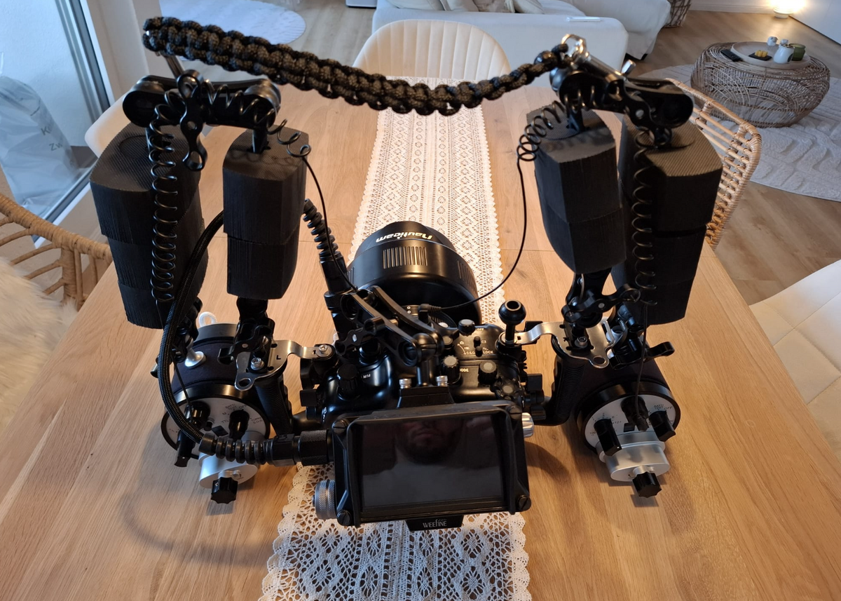 I don't know what kind of float arms you use, but the cable routing is actually a little different, and depending on how the monitor is mounted, the cable can get in the way (in my setup). I mainly use the monitor behind the camera and not above it. This is the best option for me, and I can move the flash arms freely. It also works well when transporting with a lanyard. Incidentally, the cable is much stiffer, nothing like the previous model. It's very difficult to bend. I hope it lasts longer now. Here are a few other examples. It sometimes lightly touches the float arm.